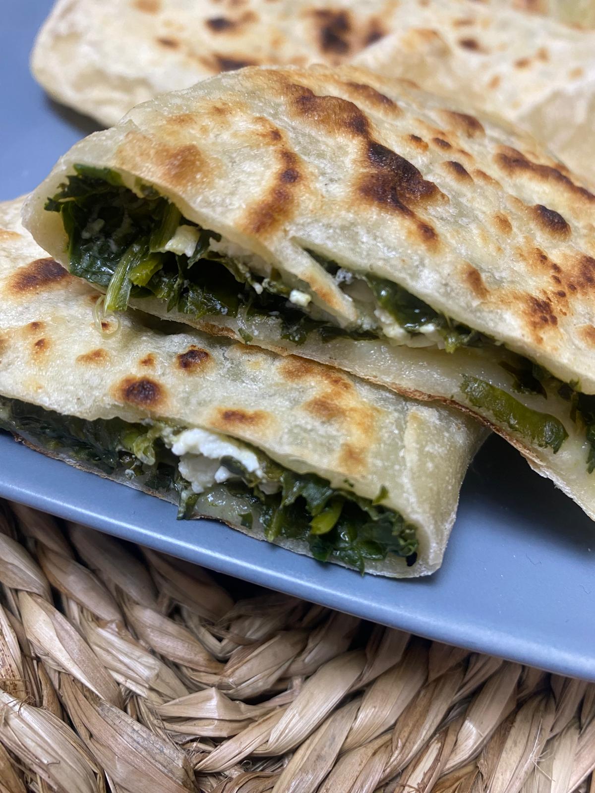 I gözleme turchi sono preparati con farina,sale, acqua e olio e farciti con spinaci e formaggio a crudo,…