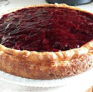 Per la copertura ho usato confettura ai frutti di bosco, ma puoi usare qualsiasi confettura che più ti piace. Puoi anche usare frutta fresca rendendola poi in una salsa. Basta inserire la frutta in una padella,con zucchero e un po’ di limone, fai cuocere fino a che non diventi una salsa. Conservare in frigo, ben coperta.
