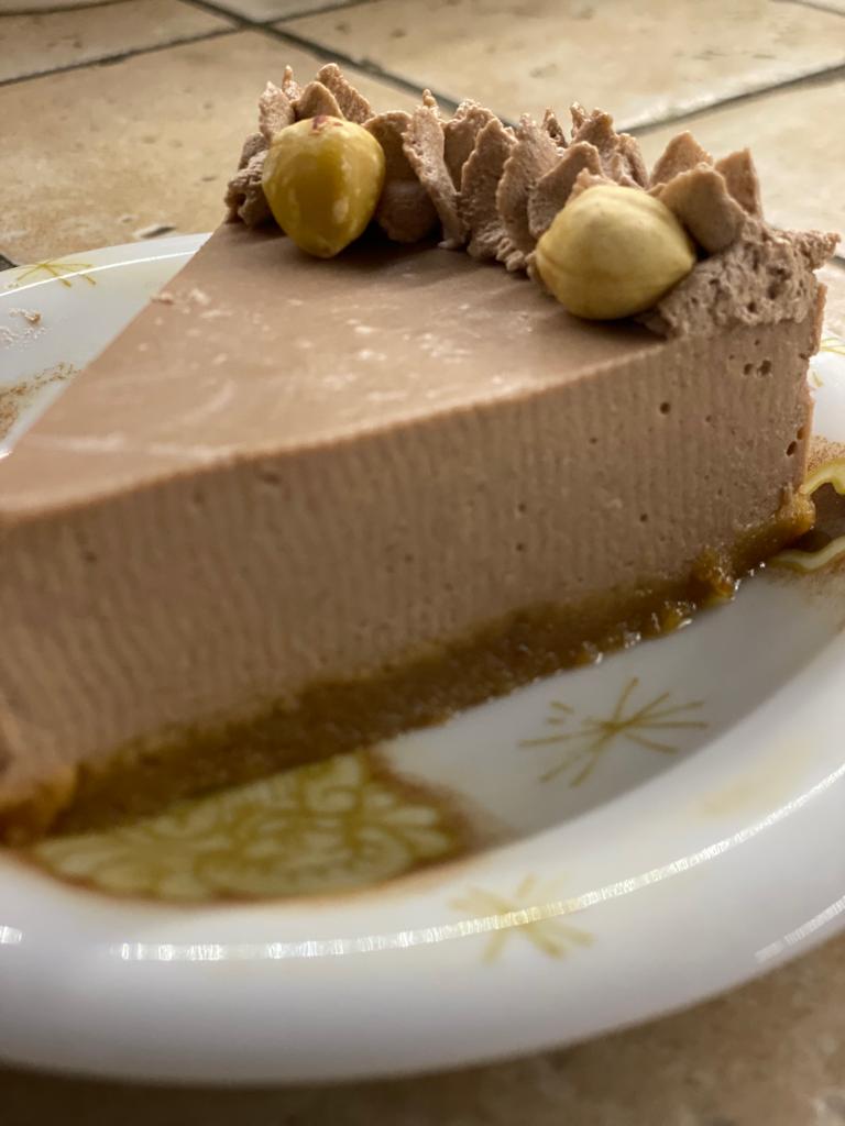 Invece della mousse puoi anche sciogliere del cioccolato fondente oppure al latte e farlo colare sul dolce, spolverizzando con le nocciole. Se vedi che la cheesecake è molle e non montata, tranquilla per il giorno dopo diventerà come nella foto, guarda il taglio, anche i biscotti usa quelli che più ti piacciono. Conservare in frigo, sempre se ti avanza 🙈