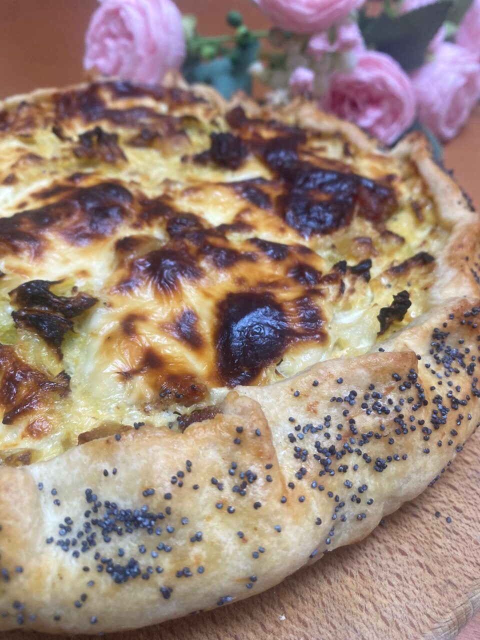 adagiandola sulla farcia, spennella tutto il bordo con del latte e spolverizza con i semi di papavero, finito ciò inforna in forno preriscaldato a 180 gradi per 40 minuti. Appena pronta la puoi servire anche subito.