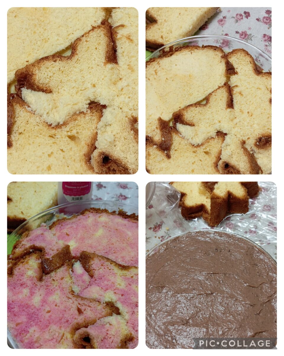 cioccolato , creando così la crema pasticcera al cioccolato. Ora assembla la zuppa inglese. In una bottiglia da bagna versa l’ alchermes e l’ acqua,agita e tieni da parte. Ora taglia il pandoro a fette dallo spessore di circa due dita, sistema le fette nella pirofila coprendo tutti gli spazi vuoti, bagna ora il dolce con il liquore . Mi raccomando deve essere bello imbevuto