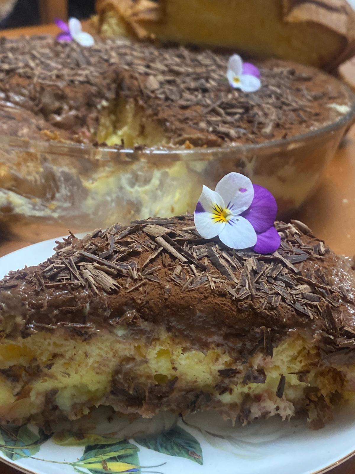 La zuppa inglese solitamente e originale si prepara con il pan di spagna,la mia versione è fatta con il pandoro, anche per riciclarlo un po’ dopo le feste. Ho preparato una crema pasticcera divisa in due tra cui una con il cioccolato e ho bagnato il pandoro con l ‘alchermens ,un liquore dolce che dà colore al dolce. La ricetta è tipica dell’ Emilia Romagna, Marche e Toscana ,ma ancora prima Inghilterra proprio per la crema all’ inglese che il dolce originale aveva all’ interno.
