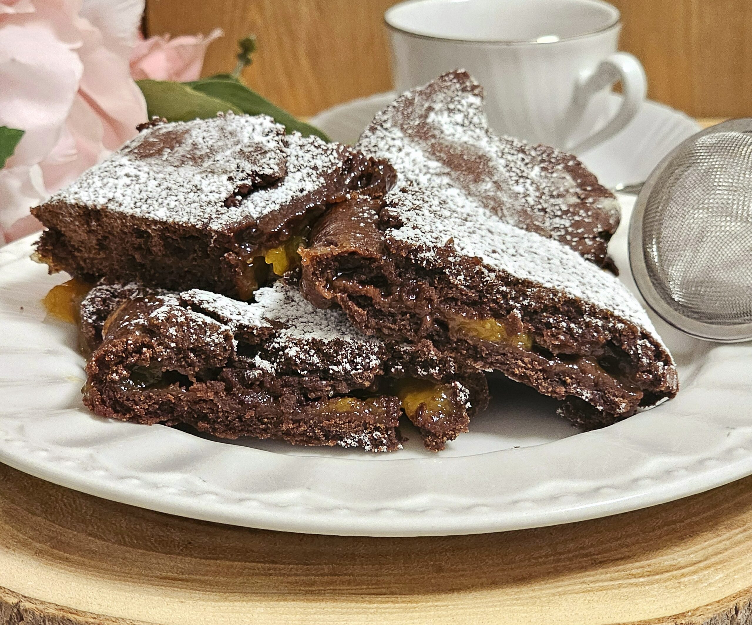 Biscotti maltagliati gusto sacher: dolce ricetta cacao e confettura è un dolce semplice e golosissimo realizzato con base pasta frolla morbida e friabile al cacao e ripieno di confettura all’albicocca.