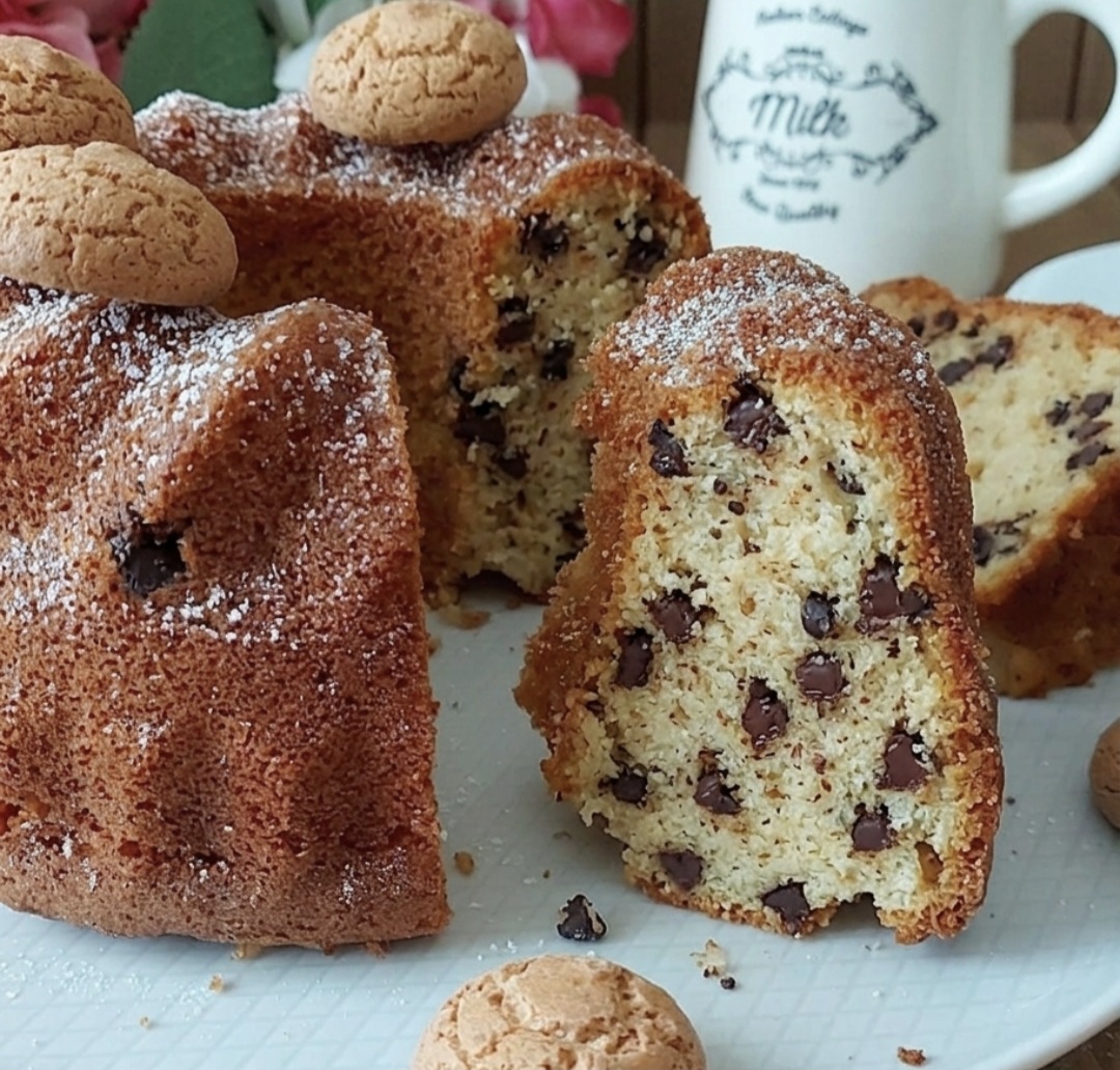 Ciambella nuvola con cioccolato e amaretti: dolce ricetta facile e golosa
