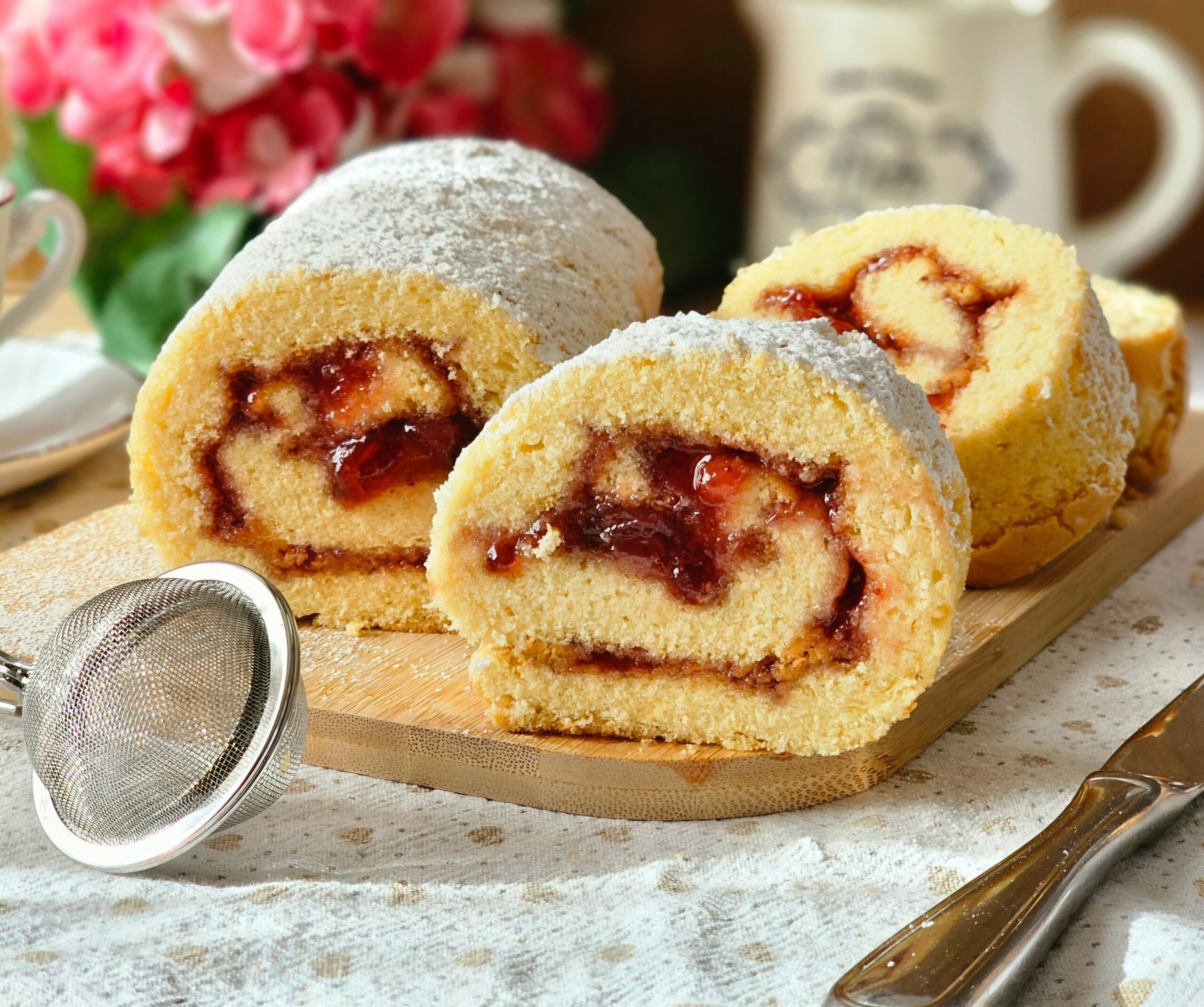 Rotolo nuvola di pasta biscotto con marmellata: dolce ricetta per merenda golosa