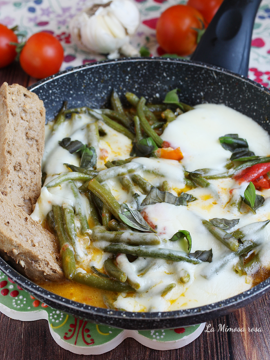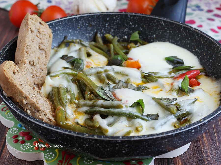 I fagiolini filanti al pomodoro con parmigiano e provola sono pronti per essere gustati! Mi raccomando, preparatevi alla scarpetta!