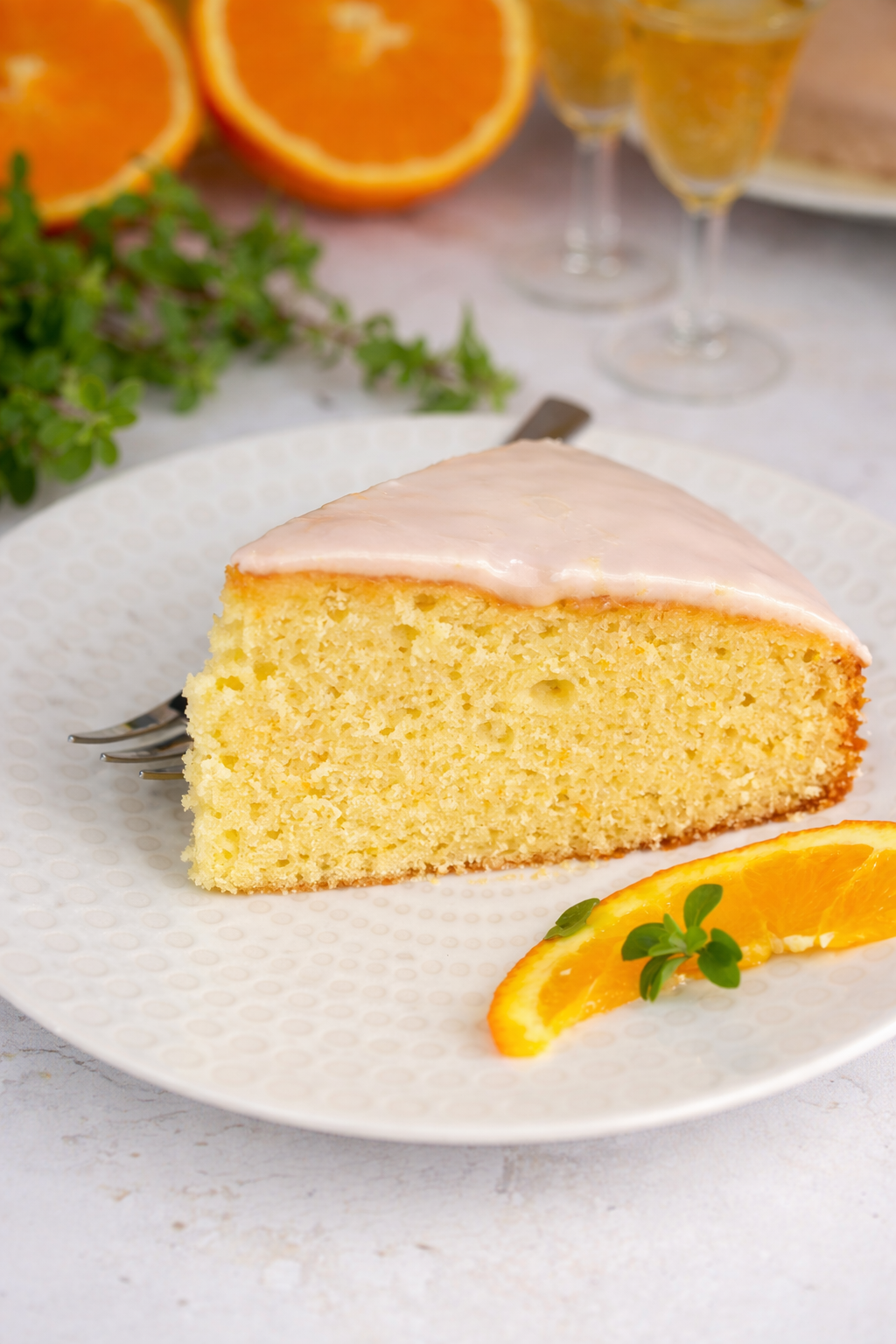 La nostra torta all’arancia con glassa è pronta per essere servita! Decorate a piacere con fettine di arancia!