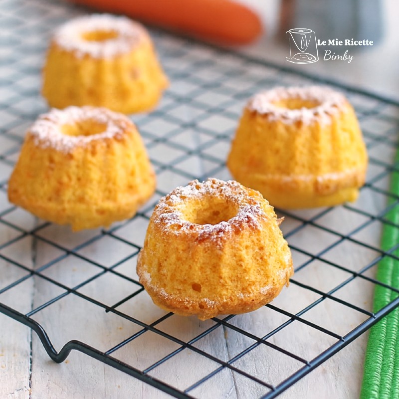 Con il Bimby prepararle diventa ancora più facile: basta tritare le carote, mescolare tutti gli ingredienti e versare l’impasto negli stampini. In pochi minuti avrai pronte delle mini ciambelle soffici e profumate, da gustare al naturale o con una spolverata di zucchero a velo.