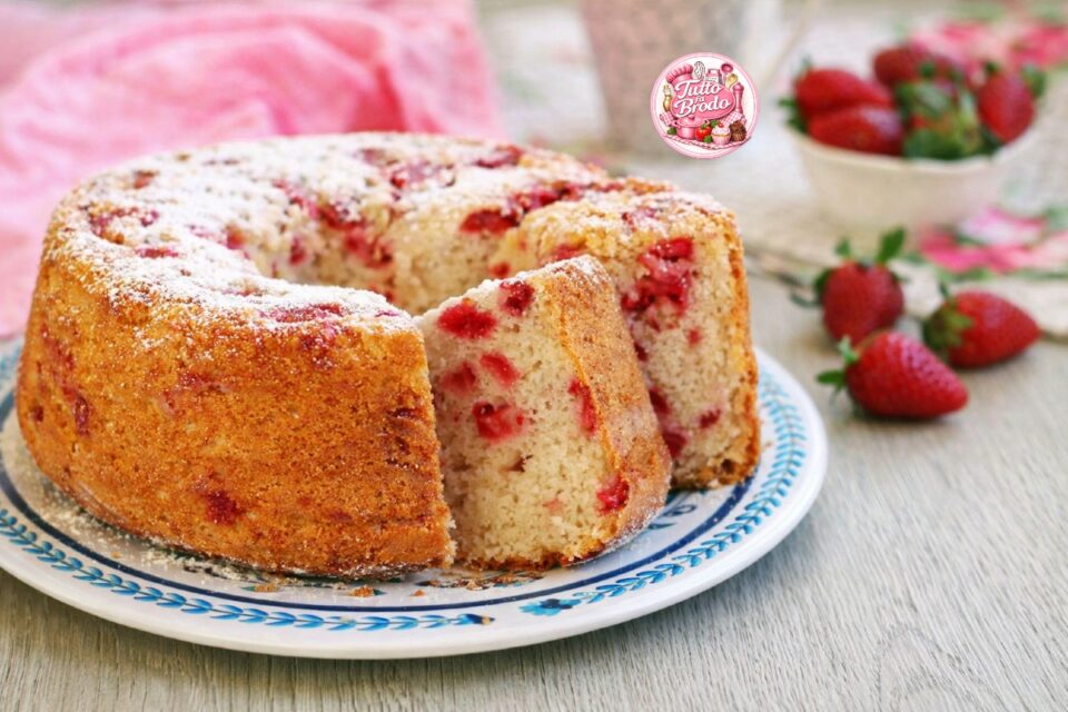 La Ciambella Fragole e Yogurt “Senza Uova e burro” è buonissima, soffice e leggera, semplicissima da fare, con tante golose fragole fresche, un profumo e un gusto davvero unico.Grazie allo yogurt nell’impasto, la consistenza resta morbida e umida, mentre le fragole regalano una nota fresca e naturalmente dolce che conquista al primo morso.