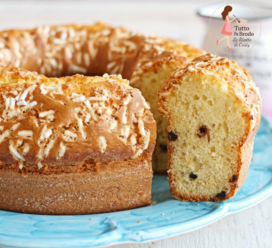 Questo ciambellone sermplice da colazione è davvero sofficissima e golosa con gocce di cioccolato e granella di zucchero, profumata e invitante, ideale per la prima colazione da inzuppare nel caffelatte, facile da fare e veloce.