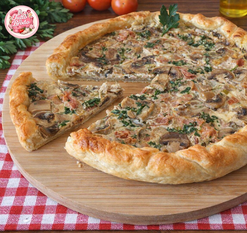 TORTA SALATA DI SFOGLIA CON PROSCIUTTO E FUNGHI