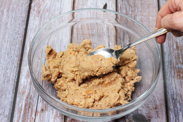 Trasferite nel robot da cucina: i fagioli ben sciacquati e scolati, il mix per soffritto, lo spicchio d’aglio pelato e schiacciato, la paprika ed il sale, tritate tutto ad intermittenza fino a formare un composto corposo.