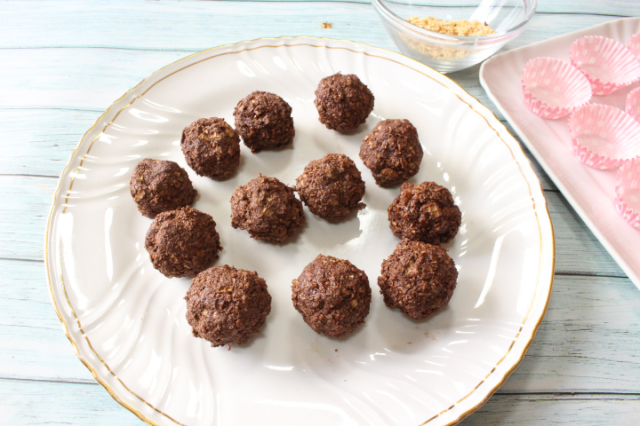 Disponete i vostri tartufi in un bel piatto da portata e poneteli in frigorifero coperti per almeno 30 minuti. In questo modo si rapprenderanno e saranno ancora più golosi!