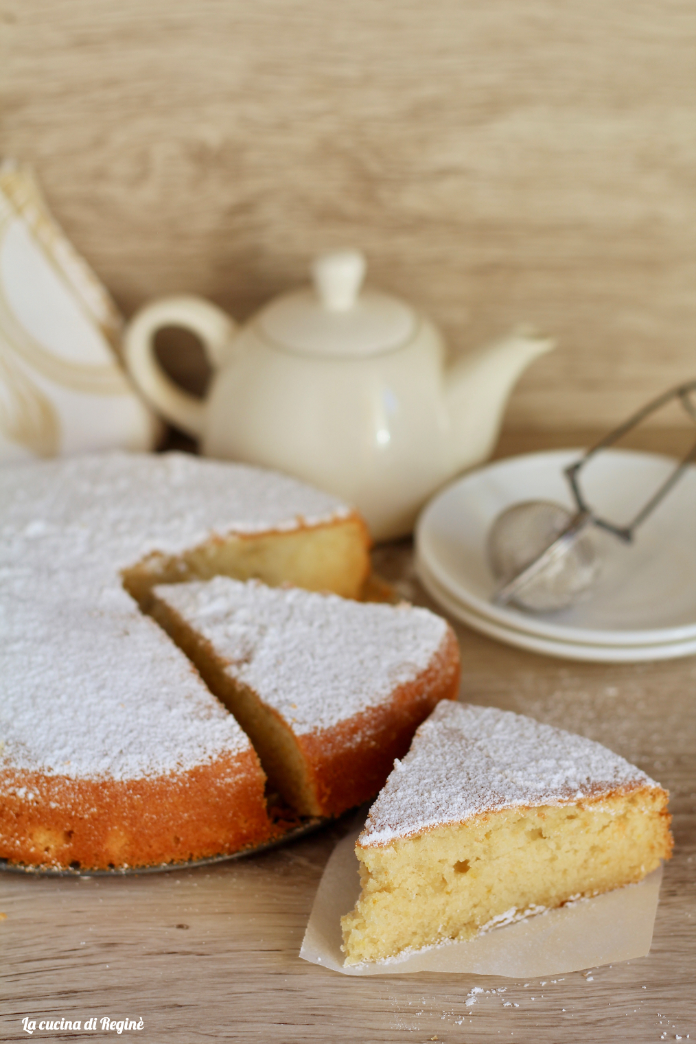 Lascia raffreddare completamente la torta, quindi sformala delicatamente e spolvera la superficie con zucchero a velo. Servila così com’è, o con una tazza di tè o caffè.