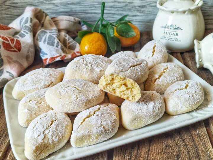 Passateli nello zucchero a velo, adagiateli in una teglia rivestita da carta forno distanti l’uno dall’altra perché in cottura gonfiano parecchio.